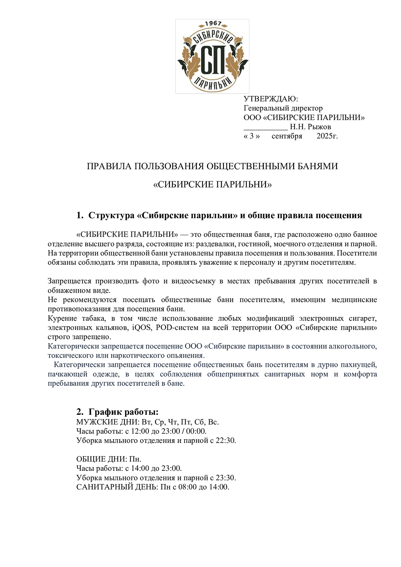 Наименование: ООО "СИБИРСКИЕ ПАРИЛЬНИ"